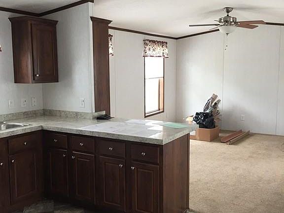 Corner lot! Brand new 2 bedroom home with 2 full baths! Open concept living room and kitchen area. Kitchen with peninsula island and all kitchen appliances included. Washer/dryer hookups. Park approval required for residency.
