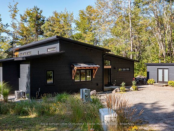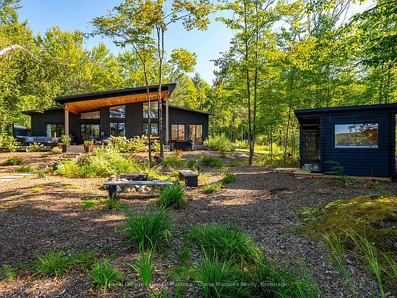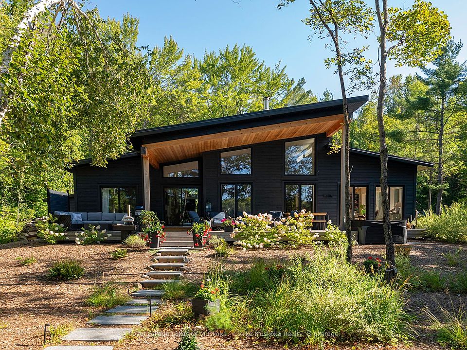 Welcome to 56 Blair Pt Rd, a stunning four-bedroom, three-bath, four-season retreat nestled on the calm shores of Little Lake Joseph on a private, level lakeside lot. Offering 2,205 square feet of thoughtfully designed living space, this recently completed 2023 custom build blends modern luxuries with Muskoka charm. The heart of the home features an expansive open-concept living and custom kitchen area, highlighted by soaring ceilings and a striking floor-to-ceiling stone fireplace the perfect gathering space for family and friends. A sun-filled, four-season Muskoka room extends the living space, offering the ideal spot to enjoy morning coffee, sunrises and lake views. Large windows frame sweeping southwest vistas, filling the home with natural light and showcasing breathtaking evening skies over the water to create a warm, inviting atmosphere, fully equipped for year-round living or as a seasonal getaway. With four spacious bedrooms and three well-appointed bathrooms, this property provides ample space for a multi-generational family and guests. Heated concrete floors in the foyer and bathrooms add extra comfort, while many interior doors are designed at 36 wide to assist those who may be mobility challenged. Step outside and enjoy the rare convenience of a level lot, where you can drive right up to the back door, and only six gentle granite steps lead you down to the shoreline. A large covered deck spans the back of the cottage for social gatherings with lakeside views. The landscaped grounds are complemented by a private sauna with lake views, a hot tub, gas fireplace on the deck, and a Toja lakeside hammock perfect for unwinding. A spacious shed adds functionality and storage. A short drive to Rosseau and Port Carling, a backup generator and Bell fibre internet make this a seamless four-season getaway. Complete with all furniture, the home is move-in ready.
