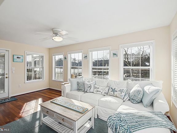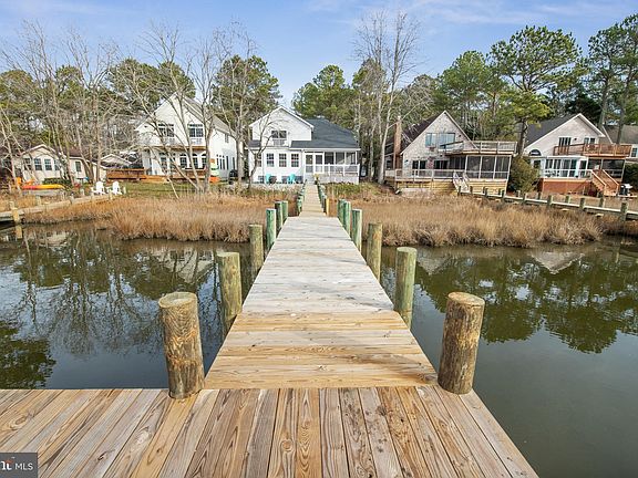 Under Contract - OPEN cancelled. Welcome home to where stunning waterfront views are effortlessly combined with a lovely open layout in the amenity rich community of Ocean Pines. Brand new dock and pier walk out to the peaceful landscape of a canal that leads to the Assawoman Bay. Dock your boat steps from your rear yard for easy boat travel and enjoyment, or have a good time fishing or crabbing from the dock. A beautiful interior is embellished with gleaming hardwood flooring, fresh paint, high vaulted ceilings, and many framed views of the water beyond. The living room welcomes you in and is adorned with a gas fireplace and provides an open flow to the other spaces of the home. A formal dining room is situated directly off the living room to allow for easy conversation and entertaining. A spacious kitchen boasts peninsula island with seating, granite counters, tile backsplash and stainless steel appliances. Kitchen also hosts a breakfast area for additional seating. Sip your morning coffee while diving into a good book in the peaceful sunroom displaying a panoramic view of the coastal scenery. Step out onto the large screened porch to experience the whispering summer breezes off the water. A main level en-suite bedroom is present allowing for the opportunity of single level living. Additionally, a second primary suite is located on the second level providing elevated waterfront views from the personal sun deck. A lavish full bath with heated floors accompanies this primary suite with double sink vanity and tile stall shower. Primary walk-in closet is upgraded with useful built-in shelving and storage. Two additional bedrooms and a full bath are also located on the upper level. A rear paver patio makes the perfect place to enjoy drinks as you watch the sun set. This home has no shortage of storage throughout, as well as within the oversized two-car garage. Additional upgrades include all remodeled bathrooms, new upper-level balcony flooring, and new roof in 2018. Enjoy being close to everything coastal living has to offer with a short drive to Ocean City or Fenwick Island. Entertainment and recreation awaits you at Ocean Pines Country Club, Glen Riddle Golf Club or Ocean Downs Racetrack and Casino. Ocean Pines hosts a large amount of community amenities including indoor and outdoor pools, racket sports, a yacht and beach club, farmer's and artisan's markets, boating and boat ramp, parks and walking trails and a fitness center!