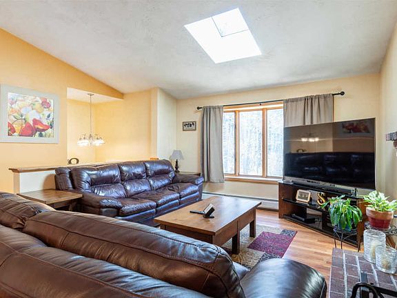 You will love this well maintained and beautiful home. Enjoy the open concept floor plan with cathedral ceilings, skylight and wood fire place in the living room which opens to the dining room, kitchen and 4 season knotty pine sun room that overlooks the private backyard and wrap around deck. The main level bathroom was updated in 2021 with new double vanity sink, granite top, toilet and tile flooring. The downstairs bathroom was added in 2020. The lower level is mostly finished with a wonderful family room and office with woodstove connection. This home has a new East Coast 50 yr metal roof installed in 2020. Home is also wired for a generator (generator not included). Enjoy summer nights out in the back deck overlooking the private backyard. A must see!