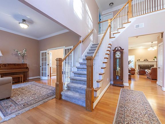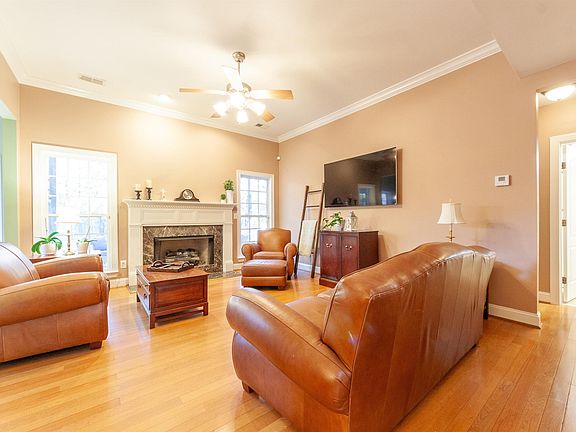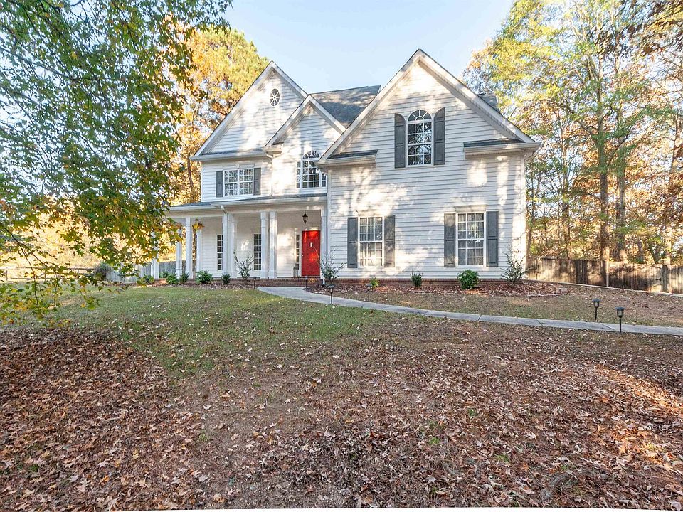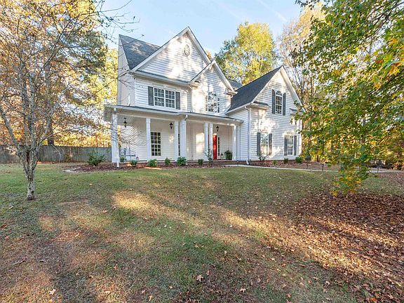 Enjoy timeless Southern charm in this 5 bedroom, 3 bathroom home in desirable Indian Springs Village. Nestled on just over an acre, the property offers a peaceful and private setting surrounded by mature trees. A welcoming front porch sets the tone for the warm, inviting interior where hardwood floors extend through the main living areas. The spacious kitchen is filled with natural light from beautiful windows overlooking the backyard and includes a large eating area. The den features a cozy gas fireplace, and the main level also offers a formal dining room, home office, bedroom, and full bath. Upstairs, the expansive master suite includes dual vanities, a jetted tub, and a separate shower. Three additional bedrooms, a full bath, and a large bonus room provide plenty of space for family or guests. Freshly painted interior and new carpet in 2025. The covered patio with gas grill, fenced backyard, and oversized 2-car garage make this home ideal for comfortable living and entertaining.