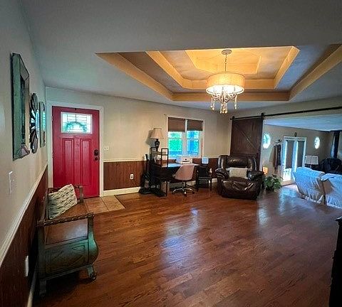 Located just 15 minutes from downtown Charleston, this beautifully remodeled rancher offers 3 bedrooms, 2 baths, and sits on 4 scenic acres. The home features a large, flat front yard—partially fenced—and a spacious, newly renovated two-car detached garage complete with a mini-split system, custom bar, and more. The oversized driveway provides ample parking, while the backyard includes usable acreage, brand-new concrete patios, a pergola, and a peaceful pond—perfect for enjoying the surrounding wildlife. Recent upgrades include a new HVAC system, tankless hot water heater, updated siding and flooring, remodeled bathrooms, fresh paint, new roofs and gutters, French drains, an encapsulated crawlspace, and more!