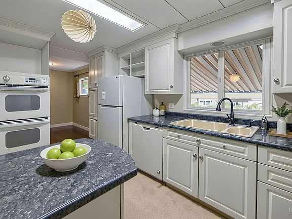 Nestled in the serene Marin Valley Mobile Country Club, 56 Club View Drive in Novato offers a tranquil retreat for those aged 55 and over. Two concepts come to mind when viewing this double-wide home, HUGE and Unique. It is huge because it sports two additional rooms in addition to the 1440 square feet of living space. It is unique because it has a bathroom and a spacious bedroom at one end and a bathroom and two bedrooms at the other end with a large communal living area, a functional kitchen, and a dedicated laundry room with a washer and dryer (both included). Cooking is a breeze with two unused ovens and a new dishwasher. Situated on a private lot with a covered carport and a cozy patio area, this space is ideal for enjoying the mild Marin County climate. Residents have access to a range of amenities within the community, including a swimming pool, hot tub, library, and clubhouse, all with a low space rent of only $639.35 per month. The location is just minutes away from shops, dining and leisure. Travel is convenient with easy access to the 101 freeway. Motivated seller - bring offers!