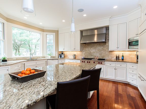 Stylish and chic shingle style colonial located within a short walking distance to Weston town center. This young custom home boasts over 5,000 square feet of custom design and quality. The dramatic 2 story foyer has a beautiful turned staircase while showcasing a large entertainment sized dining room, an in home office/library that is conveniently tucked away behind French doors. An enviable chefs kitchen includes stainless steel appliances an oversized island, pantry and computer desk working station that seamlessly flow into a family room with cathedral ceilings and inviting stone fireplace. 4 generous sized bedrooms include a luxurious master suite with walk in closet and spa like master bath. Lower level is complete with recreation room,Aupair/guest suite and full bath. Relax and enjoy summertime barbecues from your deck that overlooks a palatial and private backyard . Great commuting location to 128/Pike and Route 117.