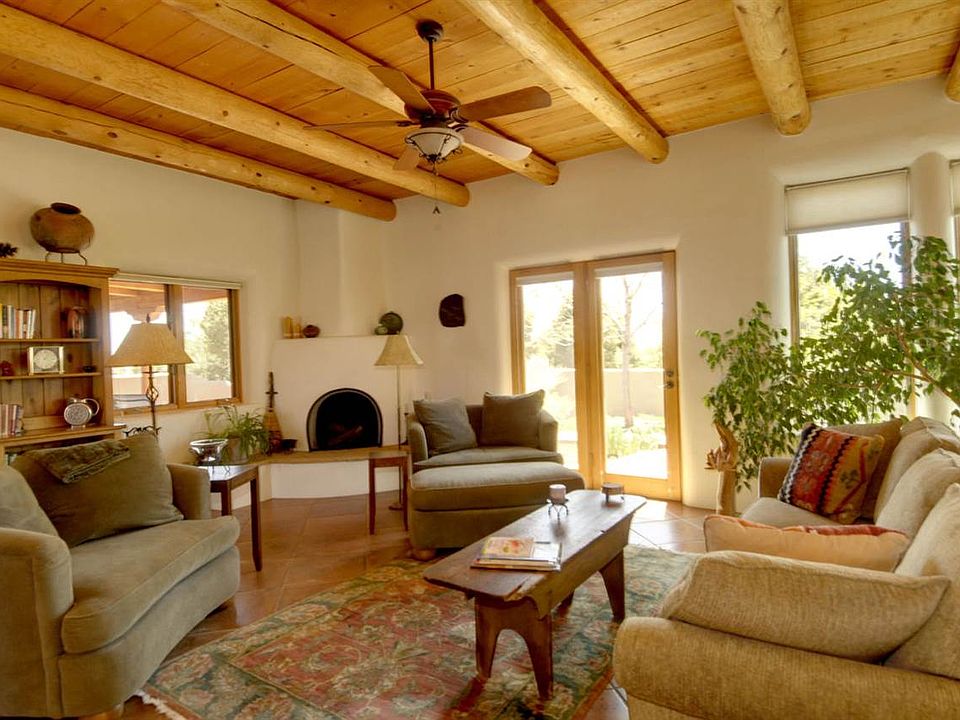A rare opportunity to live in an original Shaylube Adobe custom home on 1.6 Acres in the desirable Eldorado subdivision of Avila, this home has it all. Adobe construction wood beamed and Viga ceilings, ceramic Italian tile floors and Berber carpet in bedrooms. Radiant heat, ultraviolet protected, insulated windows and Hunter Douglas blinds. The rooms are generous and the open kitchen/ living plan and split bedroom layout is ideal for entertaining, and privacy for owners and guests alike. A true cook's kitchen with Corian countertops & sink, Bosh dishwasher, gas convection oven, custom Pine Cabinets and a breakfast bar for easy dining. There is a Kiva in the living room as well as the owners suite, which also boasts a private Portal and lovely master bath. The Courtyard walled gardens with extraordinary mature landscape are not only beautiful, and perfect for outdoor living, they also offer the rare opportunity for glorious shade in the home on warm Summer days..so cool and comfortable. The home shows pride of ownership and is so convenient to walking trails and greenbelts, great location, and the Views are truly exceptional.