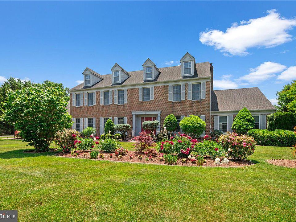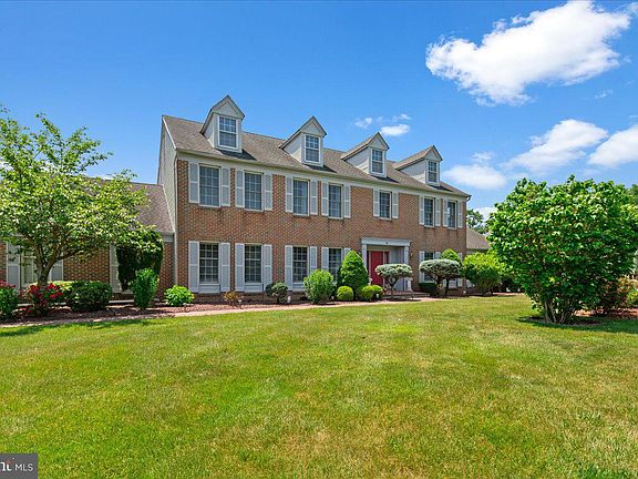 Brick front classical colonial with two primary suites. Marble floored grand foyer flanked by formal living room and formal dining room. Family room has a wood burning fireplace and wall of glass doors opening to a deck. Double door opens to a first floor in-law suite which has a large bedroom and a sitting area. Private bathroom has cathedral ceiling, skylight, soaking tub and a shower stall. Upgraded kitchen has ample cabinetry and large granite center island. Cathedral ceiling in the breakfast area. Sliding doors open to the deck. Tucked away is a private study off of the laundry area and breakfast area. Statement circular staircase leads to the second level. Hardwood floors throughout most of the house. Updated primary bathroom has skylight in the cathedral ceiling. Three bathrooms are updated. Finished basement provides room for recreation.