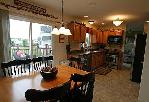 Prepare yourself! Beautiful colonial 2 car garage with open front porch built in 2005! 492 sq. ft. trex deck built in 2008 w/ an electronic awning is sure to impress you! Whole house speaker system including outside at deck. 3 bedroom 1 & 1/2 bath. Master bedroom has a huge walk-in closet. Eat-in kitchen w/ stainless steel appliances that are included. Living room is open to dining room. Roof is architectural w/ a 30 yr. transferable warranty. Plumbing has 10 yr. transferable warranty. Basement is a walkout w/ energy star furnace & hot water tank! A must see!