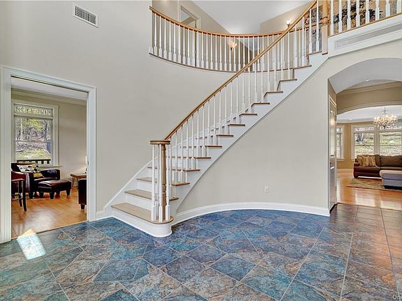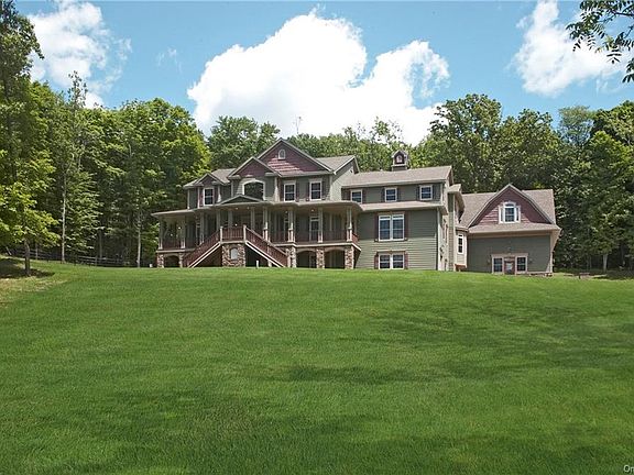 Sit back & take a virtual tour of this fine property. Approached by a drive through sweeping grounds, this 6764 sq ft. residence combines livability w/a luxury of details & craftsmanship. Grand & classic design achieves new heights w/principle rooms of large proportions both upstairs & downstairs. Rich architectural details include: beautiful millwork, classic materials, quarter sawn oak floors throughout, 3 gas fireplaces, high ceilings, deep moldings, natural light, custom built-ins, surround sound, design trend of open space, professional grade kitchen(Wolf, Subzero), radiant & hydro-air heat, 4 en-suite bedrooms, library, 2 laundry rooms, 1st floor guest suite, 6 1/2 stylish bathrooms, walkout basement, Hardi-plank siding, mahogany front porch, creative details en-liven the exterior design. Dramatic reception foyer w/double volume ceiling welcomes your guests & a glimpse of the library & dining room add eye catching appeal. Impressive kitchen design has an emphasis on open space, where you can gravitate toward the large breakfast room or family/ game room. Exquisite 2nd flr en-suite master is an incredible space that connects to a private living room where you can retreat at the end of the day & another part of the master suite opens to room that works well as a fitness center. Spa-like master bath w/rain shower, body jets & floating tub has calming sophistication & an atmosphere creating a reflective mood. 3 additional en-suite bedrooms, plus laundry room outfitted w/sink & cabinets. Outside you will find 6 private acres, terraced walls & bluestone patio for summer dining; sunny or shady places in which to relax. Just minutes to Warwick s village, restaurants, wineries, library, hospital. This stunning home is within 49 mi to GW Bridge.