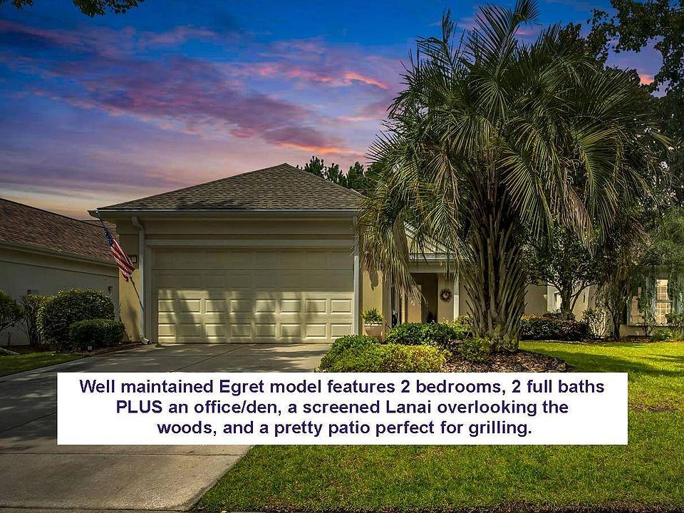 Very well maintained Egret model home in Sun City Hilton Head features 2 bedrooms, 2 full baths, an additional Office/Den, a lovely enclosed screened porch, a pretty patio, an attached two car garage, and a attractive and quiet street location. Enjoy nature and a wooded view from a beautiful screened porch overlooking the woods. There's also a pretty patio area that's perfect for grilling. This lovely home is ready for immediate occupancy, Just move in and enjoy 1,719 sq ft of heated and air-conditioned superb living space + an additional 120 sq ft (the enclosed screened porch) all year round. Enjoy the good life at Sun City Hilton Head with more than 100 resident clubs and a wide variety of of amenities, including golf courses, swimming pools, fitness centers, tennis, pickleball, restaurants, the 16,000 sq ft Magnolia Hall (a 540 seat theater for shows, lectures, and other events) & Much More.