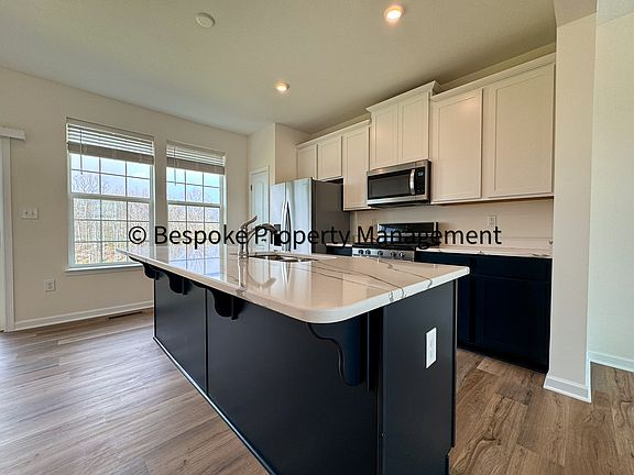 The main level features an open-concept floor plan with a sleek, modern kitchen complete with stainless steel appliances, stylish cabinetry, and plenty of counter space. The kitchen flows into spacious living and dining areas filled with natural lightideal for both relaxing and entertaining.