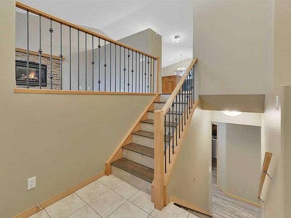 Welcome to this beautifully maintained 1,325 sq. ft. bilevel located in a desirable community, perfectly suited for a new family. With a fully developed basement, 5 bedrooms, and 3 full bathrooms, this home offers both space and comfort. Tall vaulted ceilings greet you as you enter, highlighting the bright, open-concept design. This no-carpet home is ideal for anyone with allergies or asthma. The living room features expansive west-facing windows and a central gas fireplace with stone accents and a mantle—perfect for hanging Christmas stockings. The thoughtful layout keeps the living room connected to the rest of the main floor while still allowing easy furniture placement. The kitchen boasts a large center island with ample pots-and-pans drawers and a functional corner pantry. Kitchen appliances were all updated in 2023. Adjacent to the kitchen, the dining area offers large windows and access to the 10' x 13' deck. Out back, you’ll find six raised garden beds, a spacious yard ideal for family gatherings, and a convenient shed area beneath the deck for storage. The main floor was updated in 2024 with new ceramic tile and hardwood flooring—tile in the bathrooms, kitchen, and dining room, with hardwood throughout the living room, bedrooms, and hallway. Three bedrooms are located on the main level, including the primary suite with its own 3-piece ensuite and walk in closet, plus two additional generously sized bedrooms and a full bathroom. The lower level features a wide-open family room (33' x 17') with 9-foot ceilings, two more bedrooms, and another full bathroom. A designated gear/storage room provides space for all of life’s extras. Parks, shopping, restaurants and schools are all within walking distance. Additional highlights include: insulated 22' x 22' garage, air conditioning and in-floor heat, shingles and hot water tank replaced in 2020, HRV - heat recovery ventilator for improved air quality and energy efficiency.