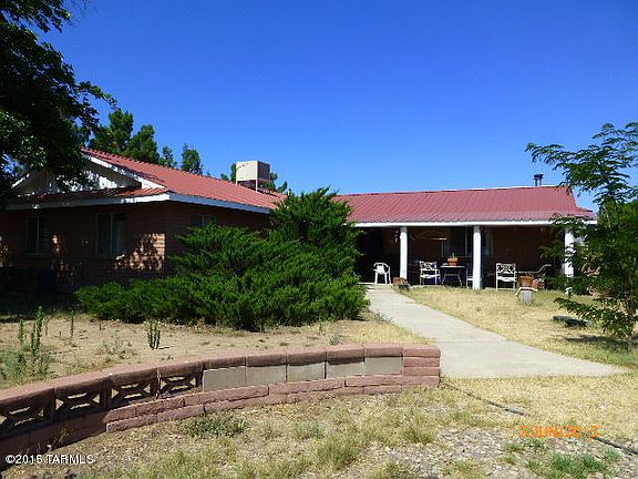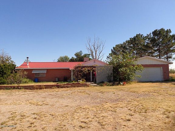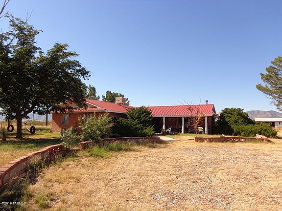 Brick home on 5 AC with new metal roof in 2015. Covered porch in front & back. Bright open kitchen. Wood stove in living room. Pole barn w/ loft 44 x 31, brick horse barn 51 x 19, corrals and a workshop 37 x 20. Great views of the Dragoons. Shop, barns and yard need some TLC due to declining health. New well 8/2011, well # 55-220708. Good bones home and out buildings