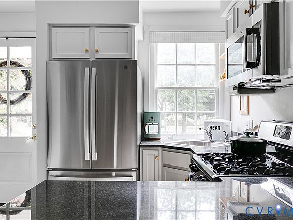 Location, location, location! This street-level corner condo with private entrance is a must see. Flooded with natural light, you will enjoy the bright and open layout with large windows, hardwood floors, and seamless flow from the kitchen to dining and living areas. The kitchen features granite countertops and brand-new microwave and refrigerator (2025). Fresh paint throughout enhances the light, airy feel. The spacious bedroom offers double closets and a private en-suite bath, plus there's a convenient half bath off the kitchen. Great storage throughout, along with a brand-new HVAC system (2024) for year-round comfort. Located in a quiet community nestled between Carytown and Libbie & Grove, this home offers easy walking and biking access to shops, dining, and entertainment. Enjoy sunny days by the stunning community pool or grilling in the shared outdoor space.