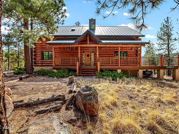 Beautiful large diameter log cabin atop the hillside on a oversized 1.96 acre lot with incredible views! Enjoy relaxing and taking in the wildlife from the open deck or your private balcony. Inside, 3 bedrooms, 2 baths, an open living room with a gas fireplace, a formal and informal dining area, granite countertops, stainless appliances, a loft and den upstairs, this is a rare gem in the mountains. Close to hiking, fishing, Sunrise Ski Resort and the Greer Lakes.