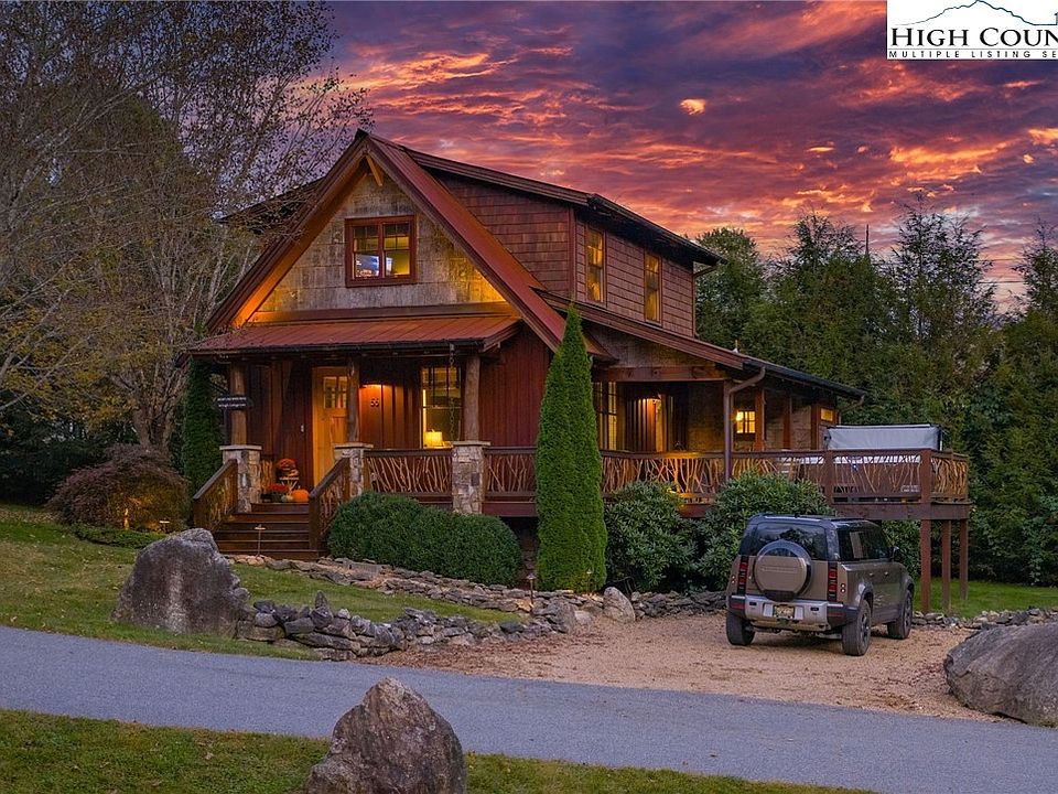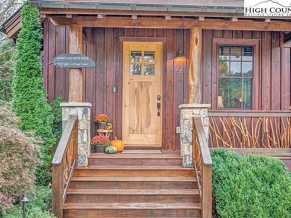 Welcome to 56 Eagle Cottage Lane, a fly-fisher’s dream retreat nestled in the premier River Club section of The Lodges at Eagles Nest, offering direct access to the renowned Elk River! With convenience in mind, you’re only five minutes from downtown Banner Elk’s shopping and dining.This fully furnished two-bedroom, two-bathroom cabin effortlessly blends luxury and mountain charm making it a perfect getaway or investment property. This home's picturesque setting was made to exhale and enjoy outdoor living with an extended deck looking out on the tranquil river and a large hot tub for relaxing. Upon entering the cabin, you're met by an open floor plan designed for both gathering and a quiet retreat. The main level showcases thoughtful mountain design and furnishings, a stacked stone fireplace, beautiful wood floors, and gorgeous granite countertops. Upstairs, the spacious primary suite offers a king-size bed, a large seating area, and a charming alcove with twin beds framed by rustic barnwood accents. A second bedroom and full bath complete the upper level. The nearby River Club offers access to the newly renovated barn—an inviting extension of your home—featuring a comfortable lounge area, pool and ping pong tables, and convenient lockers for storing gear. Established rental history available! Eagles Nest is set amid the Blue Ridge Mountains in the quintessential mountain town of Banner Elk. This gated community is a year-round haven and has state-of-the-art amenities unlike any other community in the High Country. Amenities abound at Eagles Nest including a winery, newly opened Epic Chophouse restaurant, social gatherings at North Pavilion, Sportsmen’s Lodge and Grill, fitness facility, basketball, pickleball, and tennis courts, dog park, an outdoor amphitheater that hosts seasonal concerts, multiple pavilions, mountain mini golf, ropes course, archery, playground, and for the nature lover - miles of trails for hiking, ATV’s, or mountain biking. 56 Eagle Cottage Lane participates in the ThirdHome luxury exchange program offering access to over 20,000 homes in 100 countries and is transferable. Don't miss out on this incredible opportunity to own a haven in The Blue Ridge Mountains!