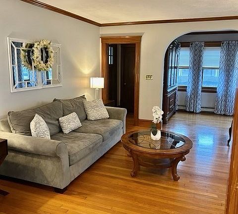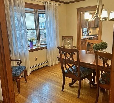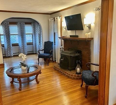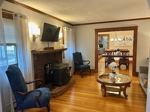 Exceptionally well kept and spacious bungalow style home in the desirable Center School neighborhood! Some of the features that make this home a must see are its oversized detached garage/workshop with air-conditioning and 60 AMP service, new heating & HW system (2024), irrigation system, wood-burning stove and so much more! The custom kitchen offers ample cabinet space, cathedral ceilings with skylights, HW flooring, and a double wall over. The dining room is situated directly off the kitchen and flows nicely into the living room which features a wood-burning stove for those cozy New England winters. Two nice sized bedrooms, a sunroom, heated porch, and full bath complete the first floor. The upper level boasts the primary bedroom with double closets, cathedral ceiling and ¾ bath, along with another bedroom and office space. Finally, the lower level is finished and has in-law potential, another ¾ bath, newer vinyl flooring, recessed lighting, copious storage, and a separate entrance!