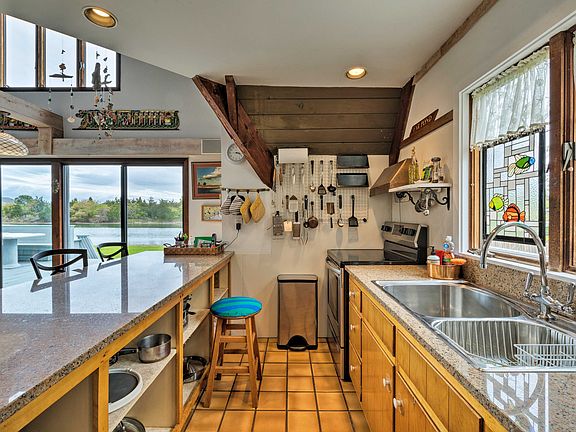 Rental Registration #: RP250097 This charming mid-century modern A-frame is located one mile from the Shinnecock Hills Golf Course, steps from a serene pond, and offers views of Shinnecock Bay. Quiet neighborhood. The beach at the end of the road has nice walking, swimming, clamming, and spectacular sunsets. Enjoy casual dining on the deck overlooking nature and active bird life. Sleeps five.