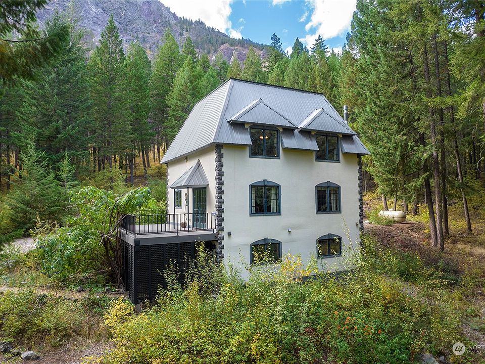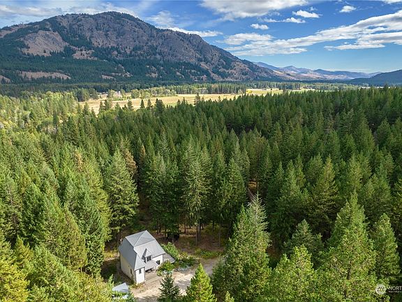 MAZAMA CHATEAU bordering Okanogan National Forest offers extreme privacy, minutes from Mazama Junction. 3bed 3.5 bath 2400sf+ home features a main living level, upper bedroom area, and lower recreation and utility rooms. Everyone can retreat to their own space in winter, or gather in the great room around the propane stove to watch the snow fall. New HVAC system & hot water tank installed in 2024. Open floorplan design, high ceilings, and ample windows for natural light to stream in. Over 3 rolling forested acres, not part of an HOA, you can't see anyone from your home. Walk from your front door into thousands of acres of National Forest. Year round Mazama trail system is close by for walking, biking, horse riding, and nordic skiing.