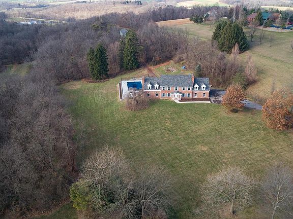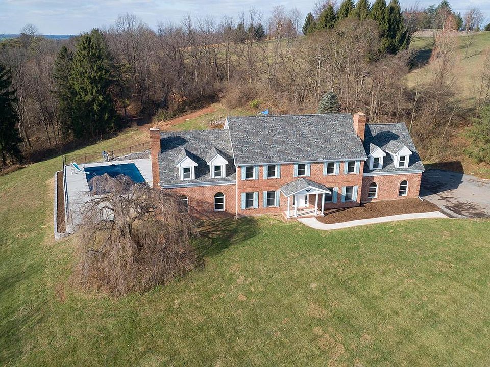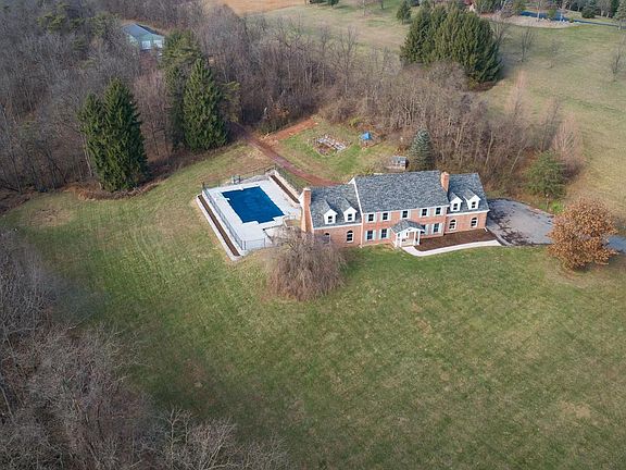 Stately brick home on over 10 acres in beautiful western Berks County! This home features 6 bedrooms & 2.5 baths, an in ground pool, and a 30 x 80 pole barn. As you enter the home you are instantly greeted by hardwood flooring and a beautiful staircase. To one side of the foyer is a large formal dining room, and to the other side you will find an office/den with new carpet & a wood burning fireplace: crown molding and chair rail can be found in both. A spacious eat-in kitchen features gas cooking and stainless appliances, new vinyl plank flooring, tons of cabinet & countertop space, and large pantry and opens to a large covered deck overlooking the 24 x 44 pool . The sunken living room has new carpet & a wood burning fireplace. The first floor in rounded out with a half bath & large laundry room with sink, coat closet, and lots of cabinets. On the second level you will find a full bath with free standing claw foot tub & oversized shower and 4 large bedrooms, all with laminate flooring and 2 of the bedrooms feature walk in closets. The AMAZING owners suite with large dressing room, master bedroom with new carpet & wood burning fireplace, & oversized walk in closet is also located on the second level. The 6th bedroom can be found on the partially finished lower level, as well as another room with 4 built in bunk beds, and a 3rd area with a woodstove and walk out to the lower area patio. There's plenty of room for parking in the driveway, or the attached oversized 2 car garage. This home had a new roof in October 2019 and new HVAC in 2018 and most windows have been replaced. This amazing home sits on a beautiful piece of partially wooded land with amazing views of the rolling countryside. Don't miss your opportunity to own this beautiful estate like property!