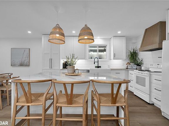Newly Renovated Waterfront Home! Perfect for Investors Or Multigenerational Families Offering 2 Self-Contained Units! Sought After In Town Lot Featuring Up To 50' Of Waterfront On Kempenfelt Bay And Spanning 315 Deep Showcasing 2 Garages & Ample Parking Space. The Main Floor Unit Offers An Open Concept Main Floor With A Backyard Walk-Out To Enjoy Those Picturesque Sunsets! A Large Kitchen With Ample Cupboards and an Island, Perfect For Entertaining Or Family Gatherings. 3 Healthy-Sized Bedrooms & 2 Full Bathrooms, An Attached single-car garage & A Finished Basement With A Large Rec Room (The Main Floor Unit Includes Half The Finished Basement). The Lower Unit Features A Separate Side Entrance Showcasing A Modern & Tastefully Decorated 1 Bedroom In-Law Suite, Equipped With A 3 p.c. Bathroom, Living + A Healthy Sized Eat-In Kitchen.