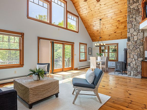 This one-of-a-kind property boasts a custom-built main house and detached accessory dwelling unit plus a newer barn and additional outbuildings all tucked away on over eight acres off the main road in a bucolic Buxton setting. The sunny open-concept living area of the main house, with its cathedral ceilings and pine floors, is anchored by a floor-to-ceiling stone chimney with cozy wood stove. The new deck enjoys the same sunny exposure and wraps around to a screen porch; both are perfect options for those warm summer days coming soon. A primary ensuite and powder room with laundry complete the main level. There are three additional rooms to use as you need - bedrooms, family room, office or other, plus unfinished space in the lower level for storage. The two-car garage has additional storage space above and is attached to the one bedroom accessory dwelling unit with its own laundry and storage shed, making it perfect for multi-generational living or renting for additional income. There's room for your four-legged friends here as well, with a newer 28x34 ft barn with six stalls and a hay loft. Your chickens, goats, and other farm animals will love the partially-fenced pasture. Or simply enjoy the privacy of this setting and use this space for gatherings, hobbies, or a workshop. With nearby fishing in the Little River, and easy access to trails, enjoy four season recreation from this property that provides all the benefits of a rural lifestyle all while being within 15 miles of Portland.
