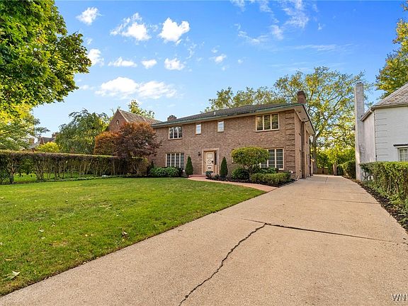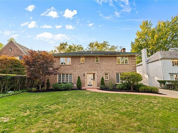 Let’s move you in…to this elegant, all-brick center entrance Colonial in Buffalo’s esteemed Park Meadow neighborhood—a home that perfectly blends timeless architecture with everyday livability. Mid-century craftsmanship shines throughout, from the copper gutters and hardware to the grand staircase and sunlit open-concept living and dining rooms with oversized front and back windows. The warm and inviting den features rich wood paneling, built-in shelving, and a wood-burning fireplace (NRTC)- an ideal setting for cozy evenings. Just off the living room, the enclosed sunroom offers slate flooring and walls of windows that bring the outdoors in, overlooking the picturesque backyard and pool. A formal dining room leads into the spacious kitchen, complete with built-in appliances, ample cabinetry, tile flooring, and pantry storage. The first floor is thoughtfully designed with a powder room, laundry room, and attached two-car garage for convenience and function. Upstairs, you’ll find four large bedrooms, two full bathrooms, and generous closet space, including a walk-in cedar closet. The primary suite boasts its own ensuite bath and a charming solarium- previously used as an exercise room and spa. The partially finished basement provides bonus entertaining space, complete with a pool table (included) and room to gather. Step outside to your own backyard oasis with expansive brick and concrete patios, mature trees, and an in-ground pool (NRTC)- ideal for summer entertaining or quiet relaxation. Located in one of Buffalo’s most coveted areas, this home is minutes from Delaware Park, Hoyt Lake, the Japanese Gardens, the AKG Art Museum, the History Museum, and all the restaurants, shops, and amenities of North Buffalo and Elmwood Village. This classic residence offers an extraordinary opportunity to create the home of your dreams in a setting that’s truly second to none. Showings begin Wednesday 10/15. Negotiations begin Wednesday 10/22 at 3pm.