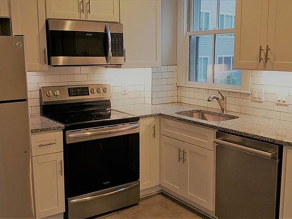 Located on a tree-lined, one way residential side street that is almost exactly halfway between Coolidge Corner and Brookline Village, this spacious two bedroom apartment just had a lot of work done, including a new kitchen (granite counters, stainless steel appliances, custom cabinets), newly refinished wood floors, and a full paint job, so it's in excellent condition for you to move in now. The unit has two very large bedrooms on opposite sides of the unit, with one having an en-suite bath, high ceilings, great closet/storage space throughout, private laundry, a second full bath, and a private back porch. The apartment is the first floor of a multi-family house and is minutes from stores, restaurants, T & bus lines, parks, the Pierce Elementary School and Brookline High School, and the Longwood Medical Area. Off-street rental parking is available for $200 a month (multiple spots available).