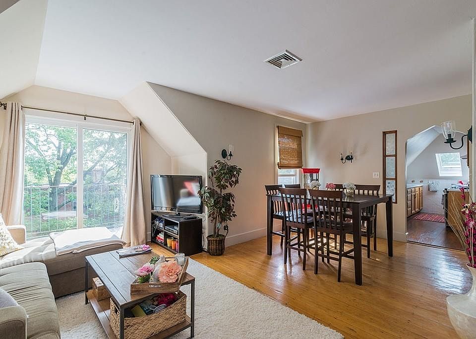 The top floor of a house on a tree lined, residential Brookline Village side street with a large park at one end, this unit will undergo renovations in May, so it will be in fantastic condition for you to move-in on June 1, including a full top-to-bottom paint job, new doors, newly redone wood floors, and a new sink & vanity in the bathroom. The apartment, which gets tons of sunshine, boasts a big living/dining room combination, two good sized bedrooms, central air & heat (recently updated systems), a porch, and in-unit laundry! Up to two off-st parking spots are available for rent for $200 each. Easy access to the Longwood Medical Area, the green line, and bus lines. Five minutes in one direction brings you to everything that Coolidge Corner has to offer (movies, stores, shopping, dining), five minutes in the other to the heart of Brookline Village!
