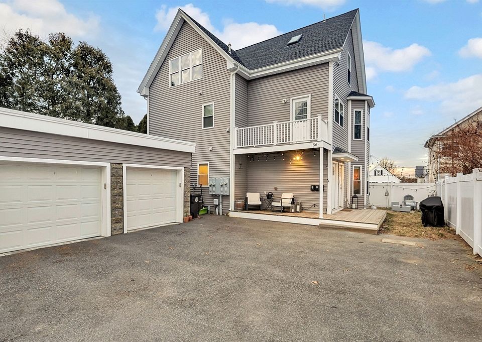 Stunning 2 bedroom Duplex with open layout and 1 Garage parking spot included!  Situated atop of the Mill Hill Neighborhood of Chelsea on a quiet dead end street. This renovated Condo features a welcoming Kitchen, Dining Room, Living room combo upon entry.  This condo features an updated kitchen with white shaker cabinets, marble counters, and stainless steel appliances.  This super sunny common room flows directly into the two large bedrooms and a fully renovated bathroom.  Downstairs boosts the large bonus office / media / family room with tons of storage. Hardwood floors, recessed lighting, central heat and A/C, in unit laundry and a covered porch/deck with water views. There are five bus routes, a commuter rail and the Silver Line is easily accessible. Easy commute to Boston via route 16, route 1 or The Ted Williams Tunnel.