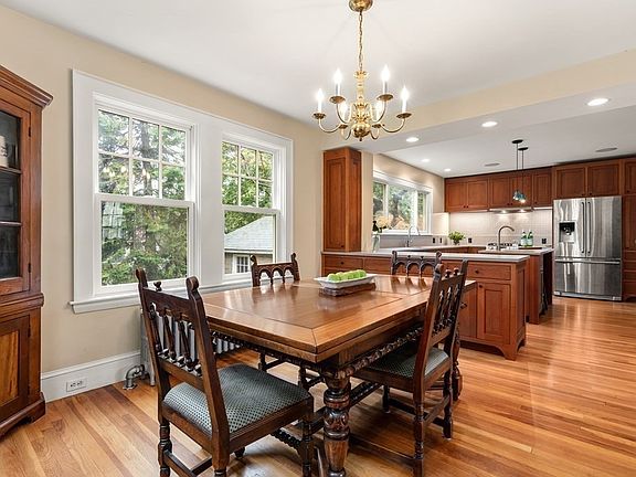 Nestled on a highly desirable tree lined street this welcoming nine room Colonial is brimming with modern updates and period architectural detail. This home features a beautiful living room with coffered ceiling and fireplace adjacent to a bright family room with access to the lovely back yard. Highlights include an open floor plan including thoughtfully renovated custom kitchen with island and dining room. The second level offers three bedrooms, renovated main bath and washer & dryer. An inviting and bright landing offers access to the third level boasting two additional bedrooms,sitting area,and modern full bath. Hardwood floors, one car garage, lovely garden and proximity to Cushing Square, schools and public transportation enhance this home.