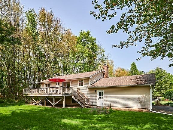 Move right into this one owner, spacious Raised Ranch on large, tree studded lot in So. Amherst at top of beautiful cul-de-sac. Close by are the PVTA & Hadley shopping. Pride in ownership shows in copious upgrades & renovations in 1872 SF, 3-4 bedroom, 2 bath home w/ attd, oversized, 2-car garage w/ workbench. Improvements include outside a 12' x 30' Treks deck along length of the house, a newer roof, vinyl siding & replacemt .windows. Inside the eat-in kitchen boasts maple cabinetry, granite counters, SS appliances, tile floors & slider access to west-facing deck for barbecues & outside activities. The LR, infused w/ morning light from its bow window, features a fireplace & oak floor - found on entire 2nd level. The full bath has coveted dual vanity, w/ granite top, tile floors & linen closet. 2nd bedrm sports the 2nd slider for deck access. A 1st level welcomes you to cozy Fam Rm w/ distinctive stone fireplace & pellet stove insert, 3rd bedrm, 3/4 tiled bath & office (w/ laundry).