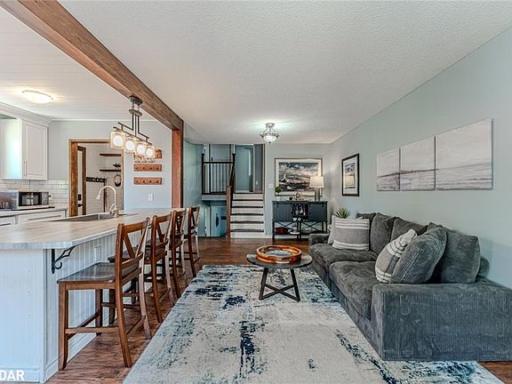 BRIGHT SPACES, MODERN UPDATES & A BACKYARD THAT DELIVERS! This bright and upbeat backsplit brings all the right energy to one of Barrie’s most established neighbourhoods. Set on a quiet, tree-lined street in Sunnidale, just steps to parks, schools and the Arboretum, it’s the kind of spot where neighbours wave from their porches and backyard dinners stretch into the evening. Out front, the newer front door, tidy landscaping and carport setup offer a warm welcome. The kitchen delivers a fresh, welcoming vibe with white cabinetry, newer counters, updated appliances, classic subway tile and a large peninsula that draws everyone in for morning coffee, casual meals or good conversation. The living room is filled with natural light and flows right out to a newer deck, with a patio, gazebo and shed rounding out a backyard that’s made for laid-back living. Four bedrooms are spread across two levels, including a spacious primary with wall-to-wall closets, plus an updated 4-piece bathroom and a second bath downstairs for added convenience. The finished basement adds even more flexibility with a rec room and wet bar that’s ideal for game nights or movie marathons. With updated shingles and earlier upgrades to the furnace and A/C, this is a #HomeToStay that’s been well cared for and is ready for new memories to be made.