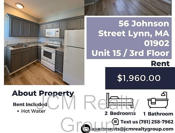 Professionally managed building has quaint two bedroom units available, located on a first floor, hot-water is included. This units offers white kitchen appliances, is in close proximity to bus-line, Market Basket, local stores, restaurants and down town Lynn. Easy highway access.