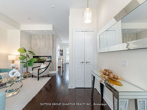 Bronte living at its best!!! Where everything you need is right outside your door. This 3 storey modern executive townhome has is all with each level having bright open rooms - 4 bedrooms, 3 bathrooms , finished basement , walking distance to the waterfront , local markets and neighbourhood cafes. Located in the highly sought after upscale Shores Condominium complex. This executive townhome has it all with 2153 sq ft of interior space. Living room , with 10ft ceilings, hardwood floors, electric fireplace , Oversized windows. Gourmet kitchen with custom cabinets, quartz counters, B/I appliances, Dining area, walkout to a large private fenced backyard. Primary bedroom with 5 piece ensuite, walk in closet, 9ft ceiling, floor to ceiling windows. 3 other large bedrooms with 9ft ceilings, hardwood floors and a spectacular view of the water. Finished basement with a 80 inch TV, 2 piece bathroom , exit to 2 indoor parking spaces steps from your door and with 24/7 concierge service. This is the perfect place to call home optional furnishings in this townhome is the perfect choice if you're ready to simplify without giving up space or comfort. In the heart of Bronte Village, walking steps away to the lake, restaurants, shops, trails, and the harbour. 56 Jones Unit 120 has LOW CONDO FEES! Amenities include: 3 party rooms which can be rented all at once or individually, Theatre room, Billards room, Wine Tasting area, Guest suites, Rooftop Pool & Spa, Fitness facilities , BBQ patio ,Car wash, Doggy spa, 24/7 concierge, Visitor Parking and much more. Maintenance includes leaf blowing, snow removal, window cleaning, landscaping, general services. Downsizing has never felt so inviting.