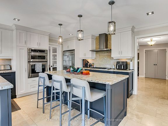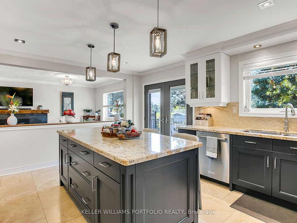 Completely renovated and thoughtfully upgraded, this Eatonville family home combines modern style with functional living across every level. Sunlight fills open-concept main-floor spaces featuring a chef-inspired kitchen with center island, breakfast bar, double ovens, and granite countertops, flowing seamlessly to the family room and formal dining area with views of the private, manicured backyard. Hardwood floors, crown moulding, and a curved open-riser staircase create an inviting, elegant atmosphere throughout. A finished lower level with walkout provides flexible space for extended family, recreation, or a home office, complete with a second kitchen, gym, media room and storage areas. Upstairs, secondary bedrooms share a renovated main bath, while the primary suite has been enhanced with a custom walk-in closet, and a luxurious ensuite with double vanity, deep soaker tub, and oversized glass-enclosed shower. Outside, the low-maintenance composite deck offers the perfect spot to kick back and enjoy the beautifully landscaped, sunny 165-foot west facing lot, lush gardens, and privacy perfect for relaxed family living and easy entertaining. Just minutes from Pearson Airport, located in a top-rated public and Catholic school district, and a short walk to the Kipling Subway and GO Transit Hub, this home offers exceptional convenience for commuters and families alike.