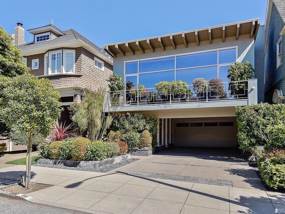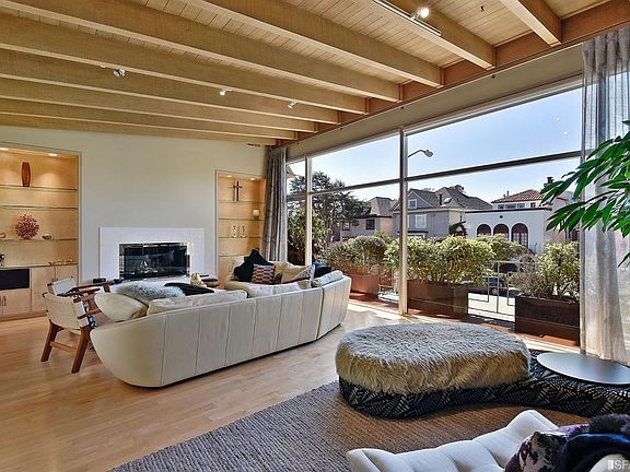 An authentic modernist masterpiece on one of Jordan Parks' most architecturally beautiful blocks, 56 Jordan Avenue combines a wonderful design aesthetic with functionality that lends itself to both glamourous entertaining and comfortable everyday living. Featuring dramatic and voluminous vaulted ceilings, with wall to wall, and floor to ceiling windows, representing the very best of stunning mid-century modern design, this fully detached home offers gracious public rooms; with an oversized living room, formal dining room, loads of built in cabinetry, large chef's kitchen, and a total of 6 bedrooms, and 5 bathrooms on two levels. The private, east-facing rear garden is a sanctuary, perfectly landscaped for enjoying the outdoors from the comfort of your home. The two car garage, and four car carport/driveway complete this stylish & functional city residence.