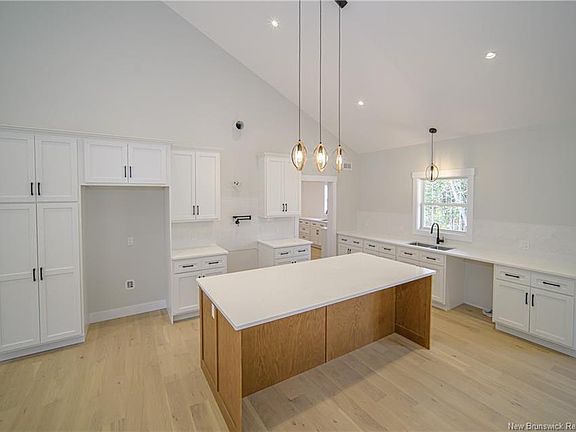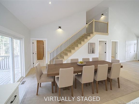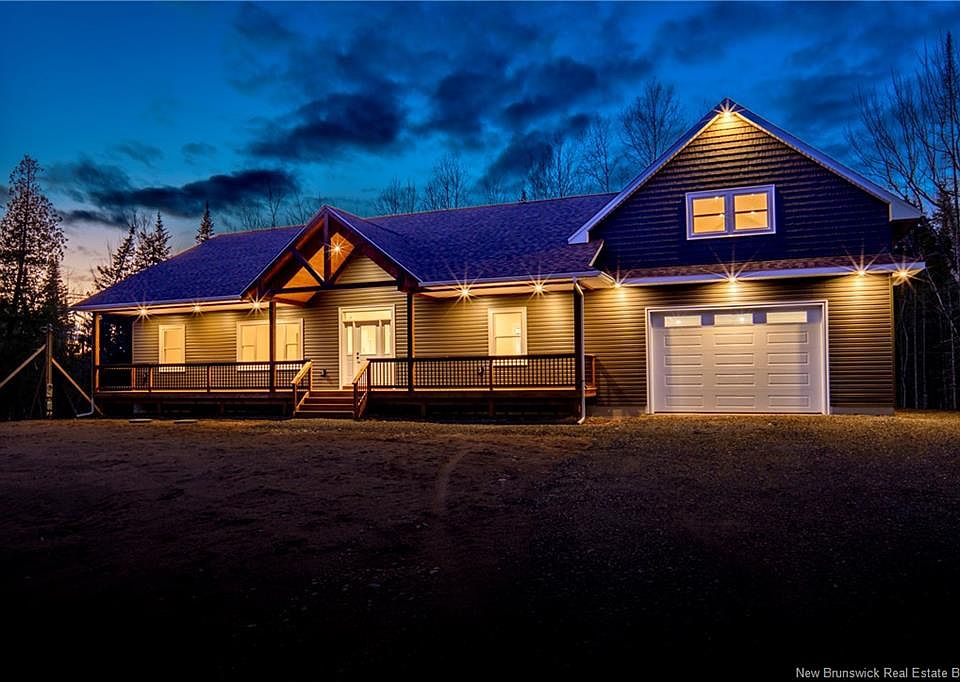 Sprawling custom bungalow set on private 1.25-acre lot in Rusagonis, perfectly situated between Fredericton and Oromocto. Curb appeal begins with massive 40' x 24' garage (complete with EV plug) and welcoming covered veranda that stretches across front of home. Step inside to stunning great room with soaring cathedral ceilings and open-concept layout. Bright kitchen showcases large centre island with warm wood accents, sleek white cabinetry, pot filler, beautiful solid-surface counters and stylish lighting. Huge walk-in pantry/second prep area offers abundance of extra storage, additional counter space and its own sink. Patio doors off dining area lead to large deck overlooking private, wooded backyard. Mudroom and laundry area conveniently located off garage entrance features custom built-ins and excellent storage to keep everything organized. Primary suite set apart from other two main-floor bedrooms and main bath, creates retreat with room for sitting area, walk-in closet, and spacious ensuite. Staircase leads to versatile bonus space above garage, offering large family room for movie nights or play space, plus 4th bedroom and 3rd bathroom - ideal for guests, teens, or home office. Lower level features ICF foundation and framed for future development, including potential for 5th bedroom, 4th bathroom (plumbing roughed in) and another family room w/ walk-out to backyard. Forced-air furnace and central air conditioning. Custom bungalow with room for everyone—and everything.