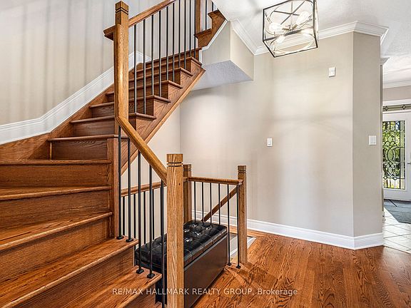 Inviting foyerLandscaped yardComposite patioCozy gas fireplaceLarge west-facing picture windowOak hardwood floorsElegant oak staircase
