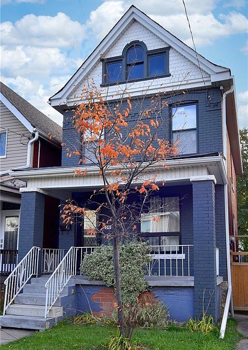 Welcome to this charming all-brick 2½ storey century home, perfectly situated close to all amenities, schools, and transit. Step inside to a spacious living and dining area ideal for both family gatherings and entertaining. Featuring a modern kitchen with white cabinets and quartz countertops. Upstairs offers three generous bedrooms and a full bath, while the walk-up attic provides additional flexible space for a home office, studio, or playroom. The walk-up basement includes a rough-in for a future bathroom. Recent updates include a newer furnace, windows, kitchen, and laminate flooring throughout. This home has been exceptionally well maintained and is move-in ready. Backyard parking for two vehicles with convenient alleyway access completes the package.