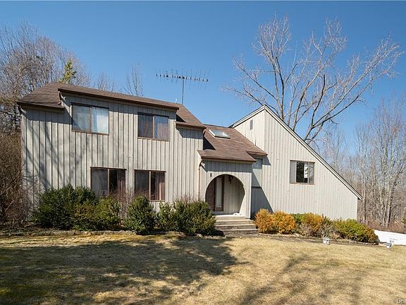 Spacious Contemporary on a tranquil country road is ready to be refreshed. Wonderful opportunity to make this special home your own! Welcoming two story entry foyer opens to a fabulous great room w/vaulted ceiling, skylights, exposed beams, hardwood floors, and stone fireplace creating an instant wow-factor. Lots of natural light throughout. The open kitchen with breakfast area, formal living and dining rooms all flow effortlessly for everyday living and superb entertaining. The primary bedroom/bath suite, three additional bedrooms and bath are well-proportioned and round out the second level. The walkout lower level features recreation, storage and mechanical rooms. An over-sized deck overlooks three acres of open lawn and woodlands. Bring your imagination and enthusiasm. The results will be rewarding.