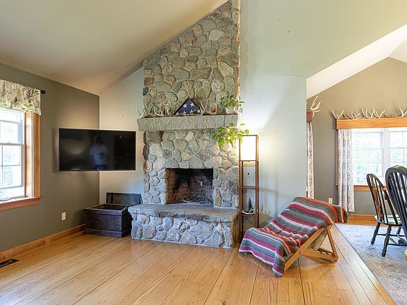 There is so much space to spread out at this charming 2 bedroom home on 15 QUIET acres! As you pull into this property you will be greeted by privacy, a massive yard, perennial and vegetable beds, an Oversized barn/garage and horse pen! All of that, before you even get into the house! The house will draw you in, with its inviting farmer's porch leading to the eat-in kitchen and dining area overlooking the yard. In the warmer months a few steps out to your brick patio will have you grilling and outdoor dining! The kitchen overlooks a cozy living room with hardwood floors and a custom stone fireplace. The kitchen is equipped with a gas range, dishwasher, pantry and bar-top island. The 1st floor bedroom is flooded with natural light and has a large custom closet and right outside of the bedroom is a full bathroom with soaking tub and stand alone shower. The washer and dryer is also on the 1st floor making one level living a breeze! The 2nd floor has an additional bedroom and a loft space that could be converted to another bedroom. In the basement you will find even more space and options with a concrete floor, high ceilings and a built in work bench. This is the perfect space for a work shop, home gym or anything else you may need! It also has a walk out, garage door providing easy storage for all of your outdoor equipment! This home has so much to offer inside and out and is close to Rt 12 for easy commuting to all local cities, I 91 and area lakes and ski mountains!