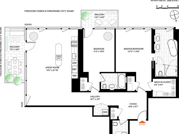 Floor to ceiling windowsCorner apartmentOversized bedroomsGenerous closet spaceEn-suite windowed primary bathYear-round multi-zone climate controlTwo balconies
