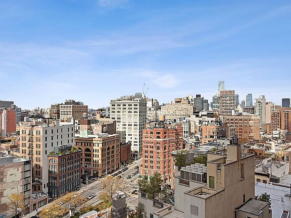Residence 14AE is an expansive 1-bedroom, 1.5-bath home featuring 11-foot ceilings, floor-to-ceiling glass, and a private north-facing terrace overlooking the heart of TriBeCa. Bathed in natural light, this beautifully proportioned home offers an effortless blend of architectural drama and warm modern design.