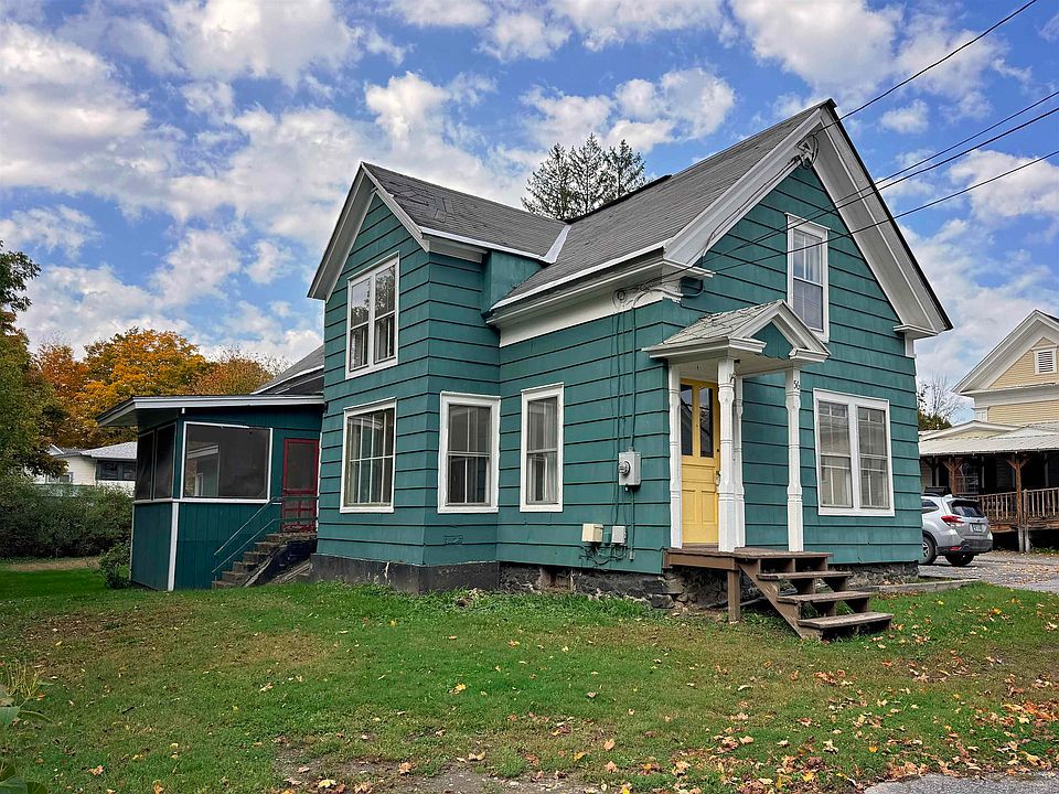 Morrisville Village House with Apartment over 2 car garage. The town classifies this property as 2 apartments. The house has 4 bedrooms and 1 full bath on the 2nd floor and Kitchen, Dining room, Living room, Office, 1 3/4 bath on the first floor with screened porch off the kitchen. Attached is a floor plan which corresponds with the photo labels for room location. House has oil heat. The apartment has 1 loft bedroom with large area for kitchen, living, and office space. Apartment also has a deck. Apartment has propane heat. The property could be used as a home with apartment rental or rent out both. Some TLC is required. Located close to Copley Hospital, Copley Country Club, Morristown Schools and downtown which features shops and restaurants. About 15 minutes to Stowe Village.