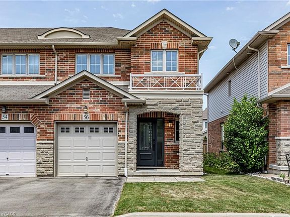 Welcome to 56 Marina Point Crescent, an updated, end unit freehold townhouse in a quiet and desirable Stoney Creek community. This 3 bedroom, 3 bathroom home offers a fresh and functional layout, highlighted by a professionally renovated kitchen (2024) featuring quartz countertops, soft-close cabinetry, and brand-new finishes throughout. The open concept living area includes a cozy fireplace and walks out to a private backyard with low maintenance artificial turf perfect for relaxing or entertaining. Upstairs, you’ll find 3 spacious bedrooms, convenient second-floor laundry, and two full bathrooms, including a private ensuite in the primary bedroom. Enjoy the benefits of an end unit with added privacy, extra natural light, and plenty of visitor parking nearby. Ideally located near waterfront trails, parks, schools, and major commuter routes—this home is move in ready and full of value.