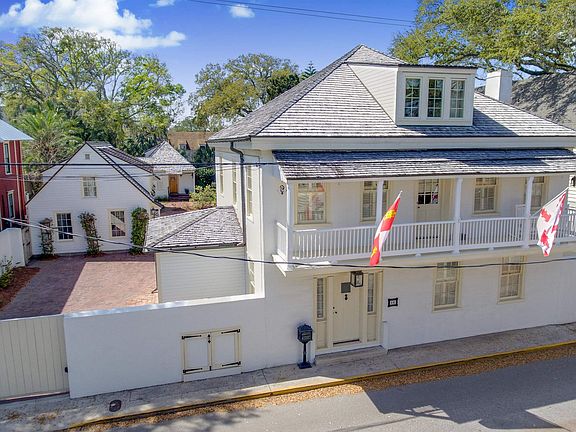 Historic Gem: Gonzales-Jones Home Est. 1764 Step into the rich tapestry of history with this exquisite historic compound, nestled within a sprawling lot exuding privacy and tranquility. Encased by a stately concrete block with stucco wall, this property offers a sanctuary of seclusion. Completely renovated by A.D. Davis Construction in 1983, it was originally established in 1764, making it the second oldest home in St. Augustine. Enter through the gates to discover four distinct structures, each with its own unique charm. The centerpiece is a magnificent three-story home, complemented by a garage with a garage apartment, a charming "School House" cottage, and a laundry room cottage. Modern luxury meets historic charm with a total of five bedrooms, four and a half baths, and an array of upscale features. Indulge in culinary delights with a SubZero refrigerator and Wolf gas range, while two gas fireplaces add warmth and ambiance. Ample storage throughout ensures convenience and functionality. Ascend to the third floor sitting room to behold breathtaking views of Matanzas Bay. A walk-in cedar closet and hidden panic room offer both practicality and peace of mind, reflecting thoughtful design and attention to detail. Protecting against the elements, a brand-new flood barrier system has been purchased for doors and gates, alongside inflatable sewer bulbs, offering comprehensive preparation for hurricane seasons. (System valued over $14,000) Entertain in style with a grilling area featuring a gas grill under a charming pergola, creating the perfect setting for al fresco gatherings. Situated in the heart of St. Augustine, this historic compound offers a rare blend of heritage and convenience, providing easy access to local amenities, attractions, and the timeless beauty of Florida's coastline. Whether seeking a private retreat or a historic masterpiece, this extraordinary compound invites you to become part of its storied legacy. Schedule your private tour today and seize the opportunity to own a piece of St. Augustine's history. Pre-approval or proof of funds required to show. 24 Hour Notice Required.