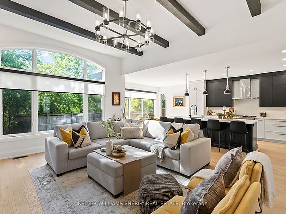 Exceptional Custom-Built Bungalow in the Heart of Whitby. Discover this stunning DeNoble-built bungalow, offering 3 bedrooms and 3 bathrooms on a premium lot in one of Whitby's quiet enclaves. Built in 2023, this home spans over 2,200 sq. ft. with a separate front entrance and oak stained stairs to the unfinished basement with large egress windows perfect for future in-law or income potential. The living room impresses with soaring 11.5 ft. ceilings, black-stained beams, a sleek electric fireplace, 5" White Oak Flooring and custom millwork display shelving. The open-concept kitchen is a show stopper, featuring River Oak wood-grain cabinetry, a centre island, pantry, upgraded appliances, and a bright eat-in area with oversized sliders. An elegant arched entrance leads to the Butlers pantry and formal dining room, making this home ideal for both everyday living and entertaining. Principal Bedroom with large walk-in closet and 4 pc ensuite with soaker tub and private water closet. Garage access into the main floor Laundry. 7' Doors throughout.