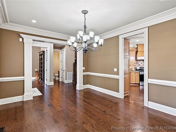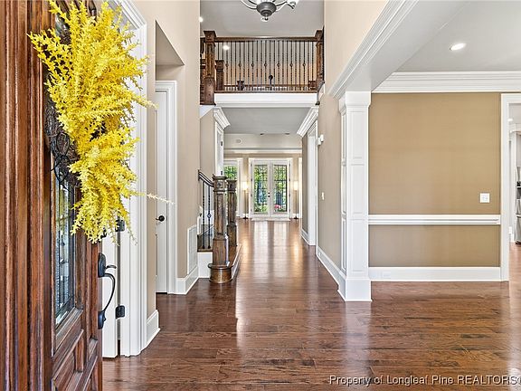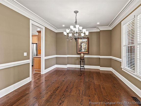 This exquisite custom-built home combines timeless Southern design with every modern luxury, offering over 4,500 square feet of refined living in the prestigious gated community of Anderson Creek Club. From the moment you enter, craftsmanship is evident in the millwork, built-ins, and soaring ceilings. A grand foyer introduces elegant living and dining spaces, each designed for comfort and style. The gourmet kitchen is a chef’s dream, featuring a massive 27×50 granite island, new gas range, custom hood, tiled backsplash, soft-close cabinetry, dual pull-out trash cabinets, under and over-cabinet lighting, a walk-in pantry, and updated lighting fixtures throughout. The adjoining keeping room features a gas fireplace with a new light kit, creating the perfect place to gather. A bright Carolina Room opens through French doors to a serene backyard oasis with a covered porch, brick grilling wall, fire pit, TV, and privacy wall surrounding a relaxing hot tub—all overlooking the 9th hole of the Davis Love III–designed golf course.