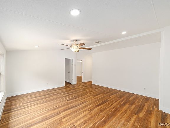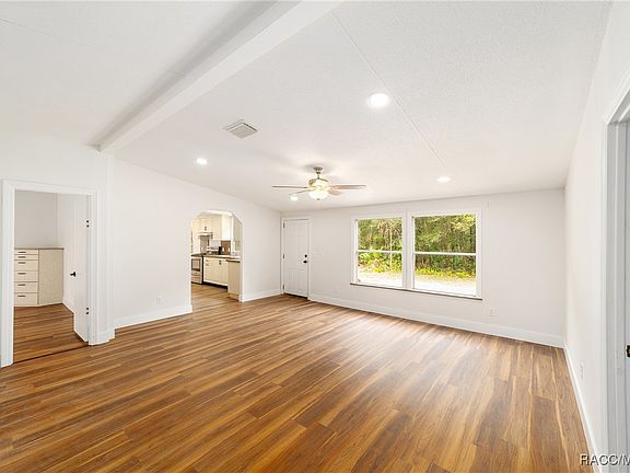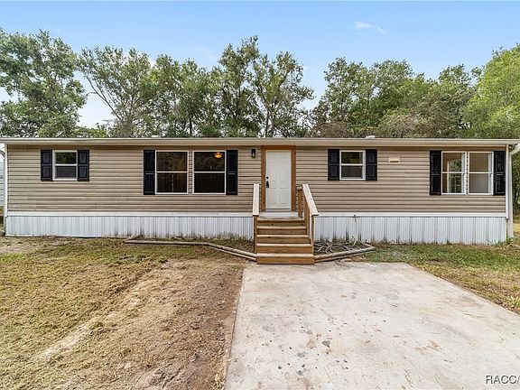This beautifully remodeled 2002 home offers 3 bedrooms, 2 bathrooms, and 1,400 sq. ft. of comfortable living space on a spacious 1.25-acre lot. Inside, you’ll find a bright and open layout featuring a large living room, a chef’s kitchen with abundant cabinetry, stainless steel appliances, and a dining area highlighted by an elegant chandelier. Thoughtful upgrades include 5-inch baseboards and custom window and door trim for a refined finish. The owner’s suite is a true highlight, featuring a spa-like bathroom with dual vanities and a makeup table, granite countertops and backsplash, and extensive built-in cabinetry. Additional conveniences include a generous laundry room with ample storage, two-car covered parking, and a wide concrete pad ideal for extra parking or outdoor gatherings. Recent improvements ensure peace of mind, including a brand-new roof, newer A/C system, and stylish interior updates. Set in a quiet and private location, this property provides a serene lifestyle while still being close to everything. Publix and Home Depot are just 5 minutes away, The Shoppes at Black Diamond only 10 minutes, Rock Crusher Elementary is 2 minutes, Inverness 20 minutes, Ocala 45 minutes, Tampa 1 hour, and the Suncoast Parkway only 3 minutes for easy commuting. Outdoor enthusiasts will love being just 10 minutes from Crystal River for boating, fishing, and unforgettable manatee encounters. High and dry, this turnkey home offers the perfect blend of country living and everyday convenience. Don’t miss your chance to enjoy the Florida lifestyle with room to spread out on your own acreage!