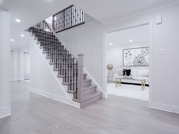 Beautiful and spacious 4-bedroom detached home with a professionally finished legal basement apartment. This home features master bedrooms with large sitting area with gas fireplace and TV wall and his/her closet. main floor layout that feels open and inviting. The upgraded eat-in kitchen offers ceramic flooring, a stylish backsplash.. The main floor also includes a full 3-piece washroom, a warm family room with a fireplace and hardwood floors, a separate dining room, a formal living room with hardwood flooring and throughout crown moulding main and upper floor. The upper level offers four generous bedrooms and three full bathrooms. Main floor laundry with garage access adds convenience. main floor and hallway pot lights, and a 3-piece bathroom. Wainscoting and wall decor all rooms. Spend $120000.00 recently on renovation